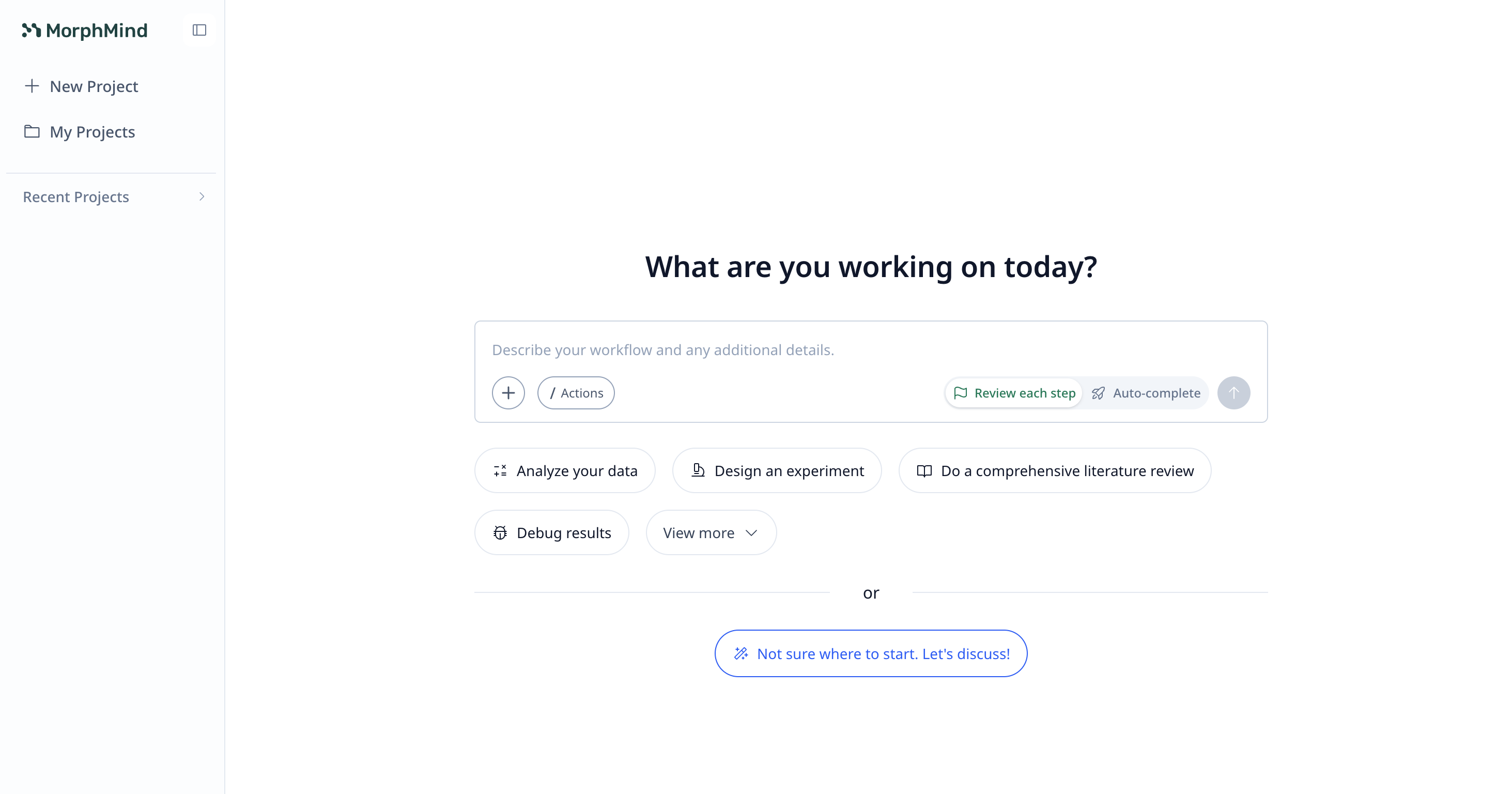 MorphMind es donde creas, personalizas y ejecutas AI Agents, permitiendo a los investigadores construir agentes conectados a flujos de trabajo sin necesidad de desarrollar toda una infraestructura de IA.