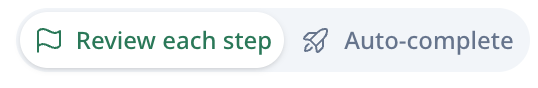 Comienza con Revisar Cada Paso para entender cómo piensa tu agente, luego cambia a Completar Automáticamente una vez que estés seguro.
