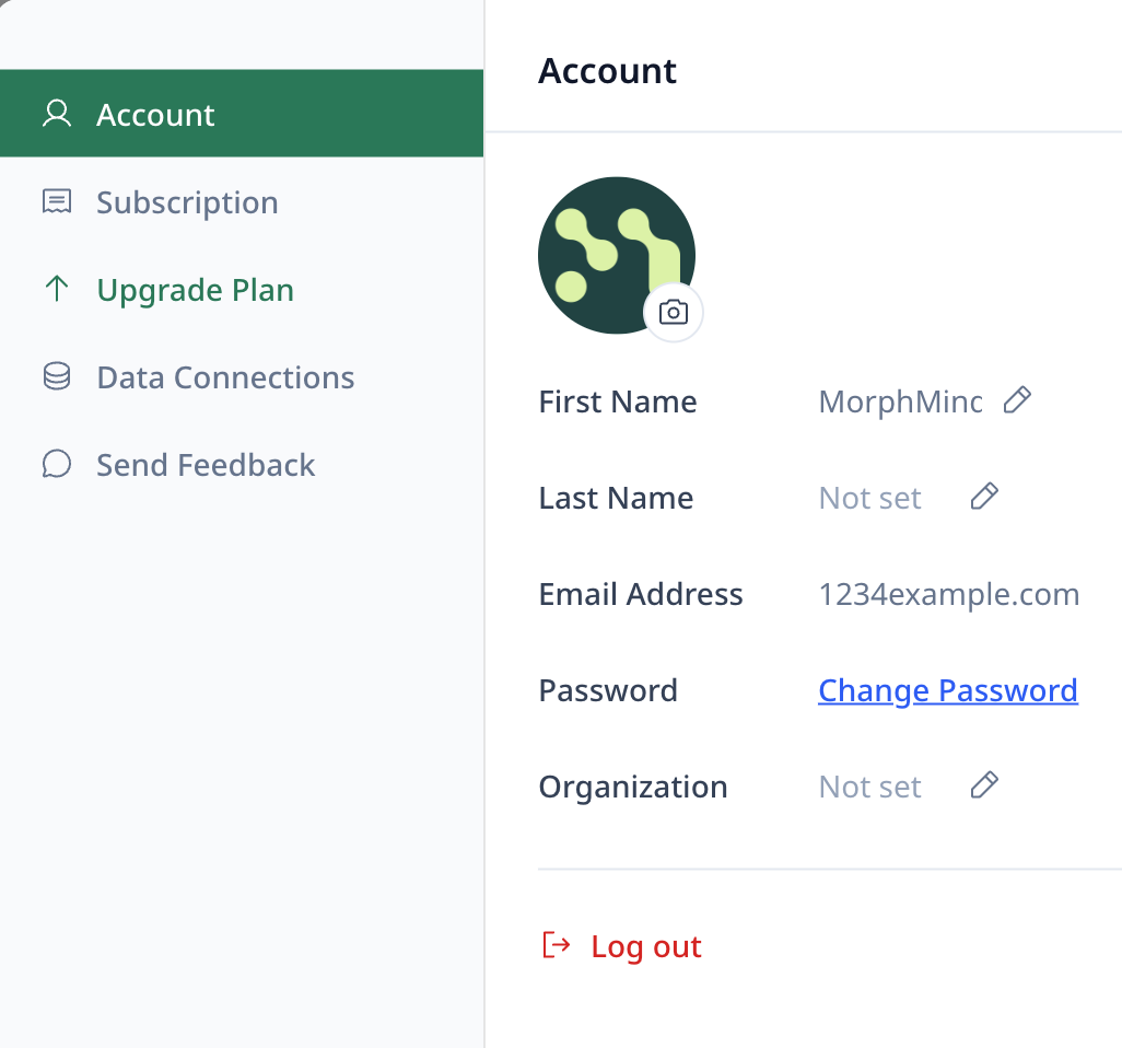 Haz clic en tu perfil para acceder a Configuración, donde puedes administrar tu cuenta, conexiones de datos y actualizar tu plan.