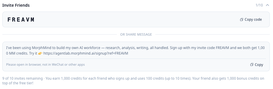 매일 무료 MM Beans 500개2026년 4월 2일태그:featurerelease-2026-04-02모든 사용자에게 매일 MM Beans 500개가 자동으로 제공되며, 매일 초기화됩니다. 팁크레딧 사용 순서: 매일 무료 → 월간 할당 → 보너스 크레딧 → 구매한 크레딧. 잔액 확인하기 →