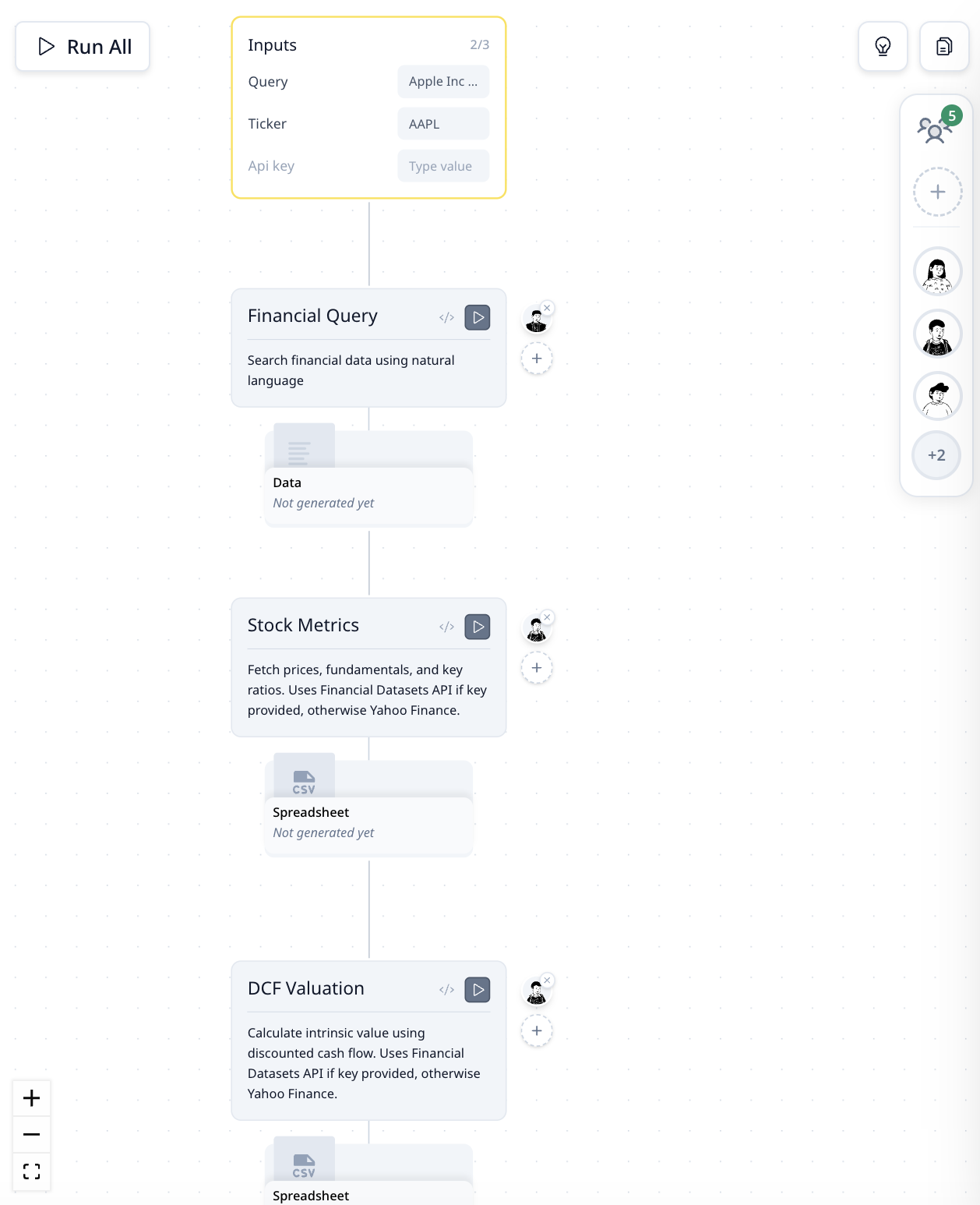 该 Agent 使用真实输入运行标准的现金流折现模型。您可以查看和编辑每一个假设——增长率、折现率、终值。数学过程透明且可重复运行。