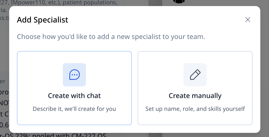 您还可以通过聊天或手动方式 添加新专家,以获取新任务所需的专业知识。