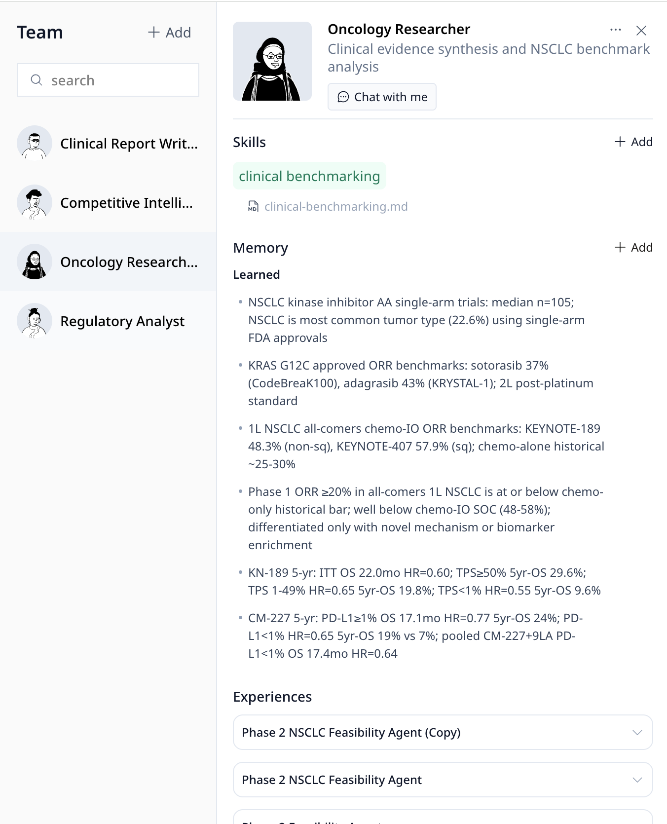 在 团队管理 面板中查看和编辑专家资料——技能、记忆和经验。