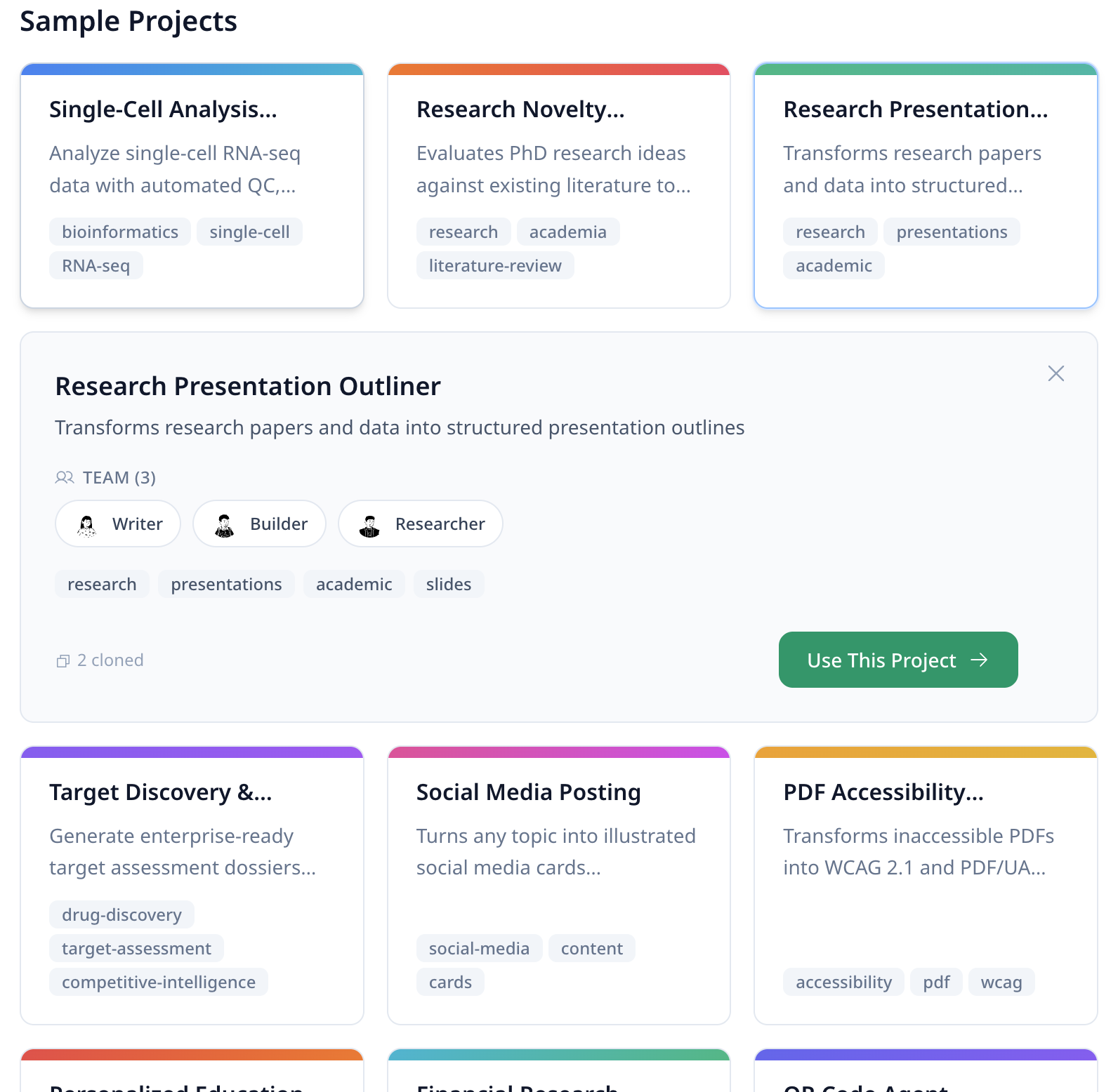 试用预构建的示例项目2026年3月18日标签:featurerelease-2026-03-18使用现成的项目模板,搭配预构建的 AI 团队,快速上手 MorphMind。 更快地了解一个端到端的 Agent 设置长什么样,再决定是否要从零开始构建您自己的版本。 浏览示例项目 →